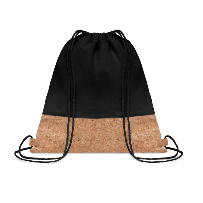 Cotton drawstring bag with cork detail, printable, 160 g/m2