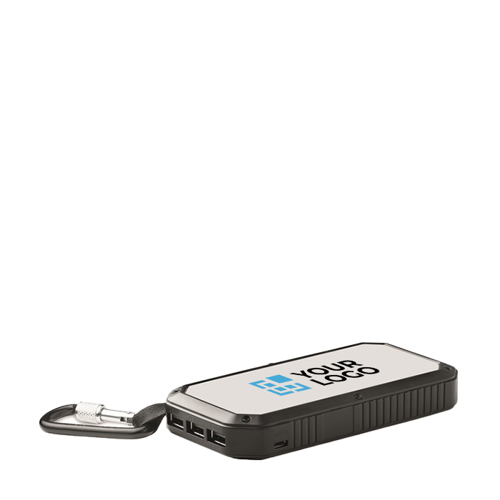 Power bank with solar charge, LED lights & carabiner, 8,000 mAh