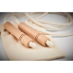 Skipping rope with wooden handles in a cotton bag for gyms