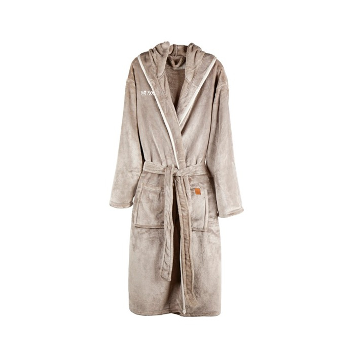 Premium fleece bathrobe with hood and pockets, size L/XL