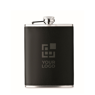 Stainless steel hip flask, synthetic leather cover, 200 ml