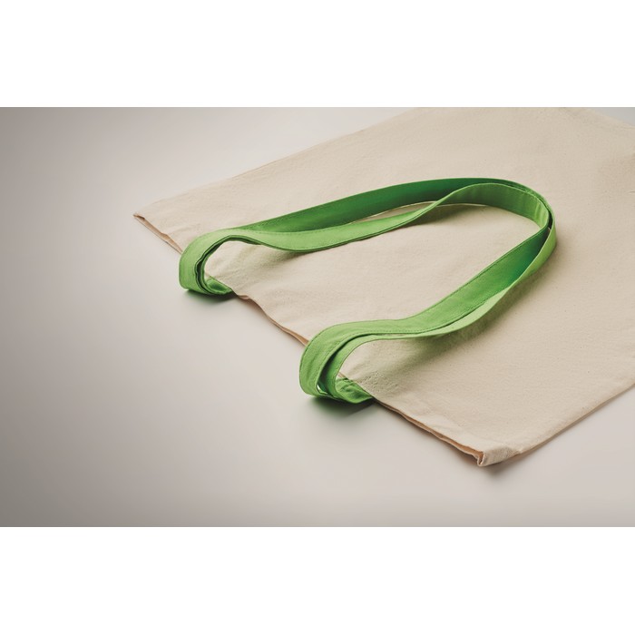 Natural-coloured cotton bag with coloured long handles, 140 g/m²