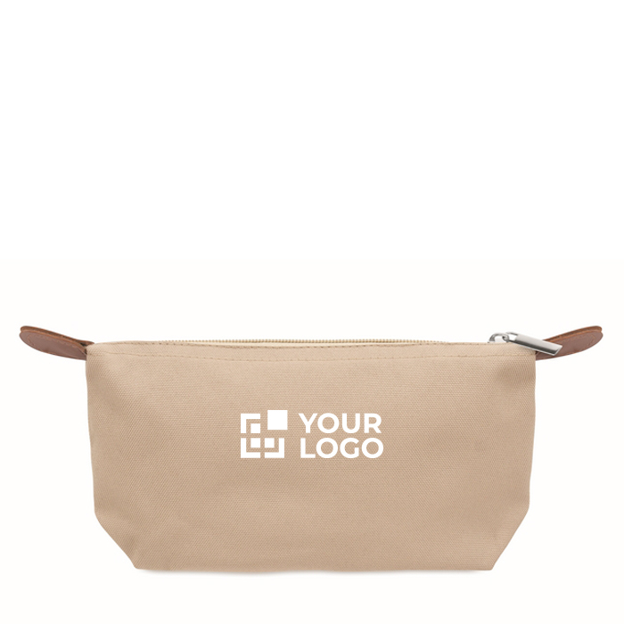 - 600D RPET polyester toiletry bag with brown PU detail
